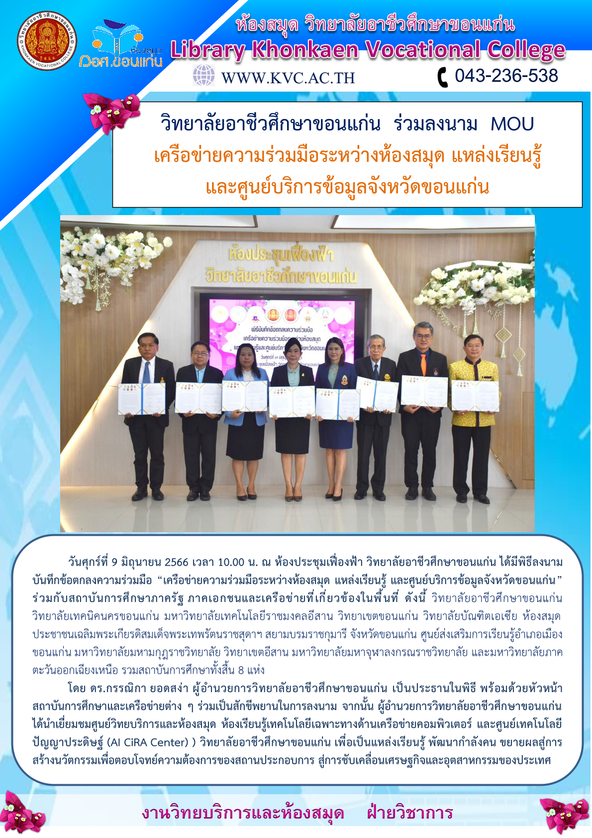พิธีลงนามความร่วมมือระหว่างเครือข่ายห้องสมุดจังหวัดขอนแก่น